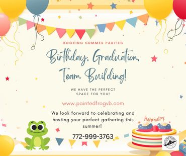We had our son’s birthday party this weekend and it was a great experience! They have a private room and a dedicated helper that made it so easy and nice! This was a rambunctious group of 7-8 year olds and I was extremely nervous at first with how crazy they can be, but Staff handled them with such care and grace and made the day perfect. Once they were done painting, they had pizza, cupcakes, did gifts, and then played organized games. It was perfect. The boys had so much fun. They all already want to go back. I really feel like the party was such a great value too! I highly recommend Painted Frog!