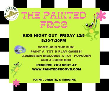 Love Painted Frog! Great family environment or great for a girls day or date night. Can honestly suit any need. I was there early in the day on a week day (without the kiddos!) and even tho staff was busy with their day to day work to make sure the studio is neat and tidy and also making sure all the pieces from previous days are being prepared to be put in the kilns, they still took the time to make sure i had everything i needed and chat a little.
