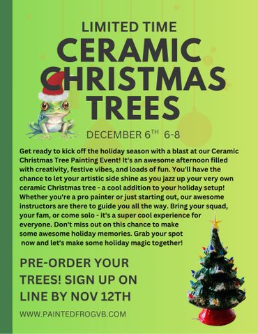 Welcome to Painted Frog, a unique pottery painting studio where creativity meets community. At our studio, we offer a vibrant space for artistic expression and also for hosting memorable meetings, creative workshops, and celebratory events for both individuals and business groups. Our delightful menu features an array of delicious items paired with a thoughtfully curated selection of wine, beer, and non-alcoholic beverages. Whether you're here to explore your creativity, forge meaningful connections, or simply enjoy our culinary offerings, we invite you to join us for an inspiring and enriching experience.