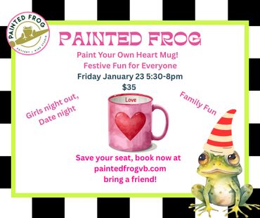Welcome to Painted Frog, a unique pottery painting studio where creativity meets community. At our studio, we offer a vibrant space for artistic expression and also for hosting memorable meetings, creative workshops, and celebratory events for both individuals and business groups. Our delightful menu features an array of delicious items paired with a thoughtfully curated selection of wine, beer, and non-alcoholic beverages. Whether you're here to explore your creativity, forge meaningful connections, or simply enjoy our culinary offerings, we invite you to join us for an inspiring and enriching experience.